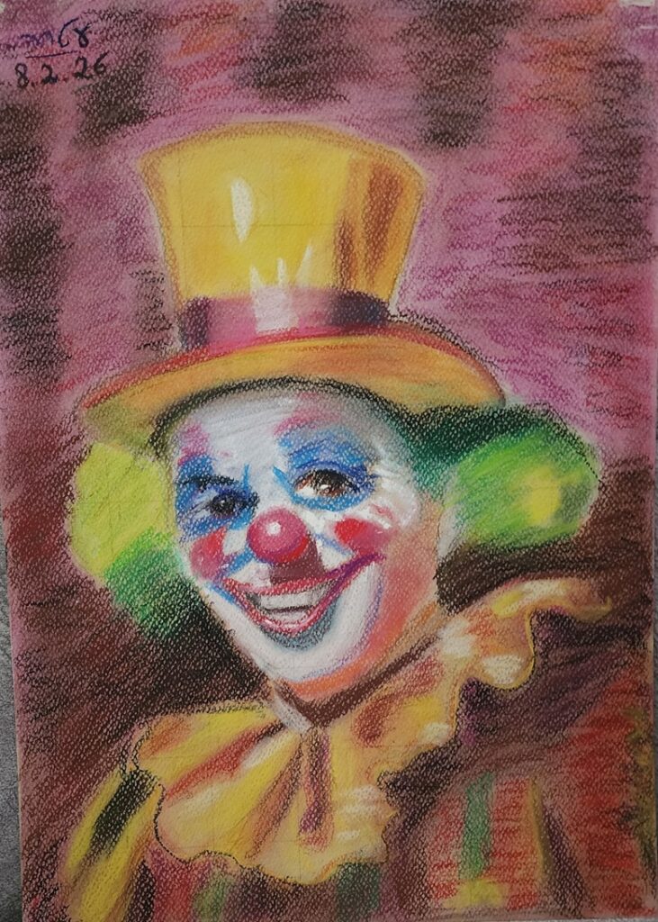 על קירות הגלריה מוצגות יצירות ציור מגוונות, בהן מופיעות דמויות של ליצנים, אנשים וטבע, כולם מחופשים, כל אחד בסגנון ובאופי הייחודיים לו. שילובי הצבעים הנועזים, לצד עבודות המבטאות חופש, משחק ויצירתיות, יוצרים חגיגה חזותית ברוח אמרת חז״ל: “משנכנס אדר מרבין בשמחה”.