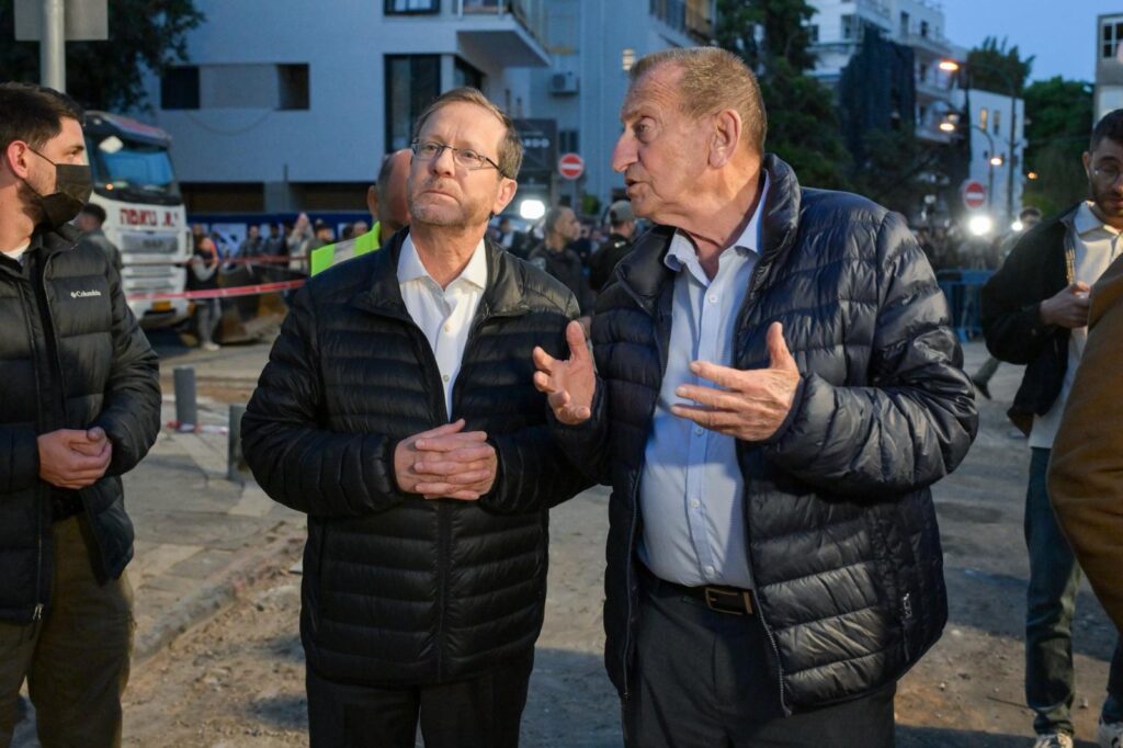 נשיא המדינה יצחק הרצוג ביקר היום, יום שלישי, ו׳ בניסן, 24 במרץ, בזירת הנפילה בתל אביב. לאחר מכן המשיך הנשיא לביקור בחמ״ל העירייה, שם קיים הערכת מצב יחד עם ראש העיר רון חולדאי והתרשם מפעילות הצוותים הפועלים בשטח.