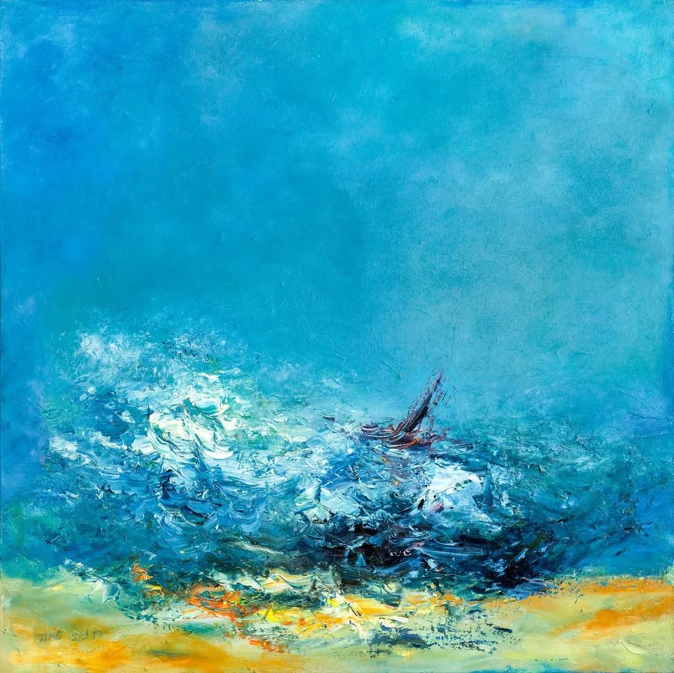 בתנועות המכחול הסוערות, בצבעים הנשברים זה בזה, ניכרת התפרצות של כאב, פחד , אובדן אך גם כוח חיים עיקש. גל אחרי גל.